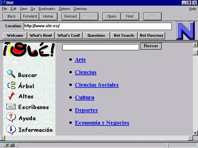 1996. Portada del buscador ¡Olé! desde un navegador Netscape